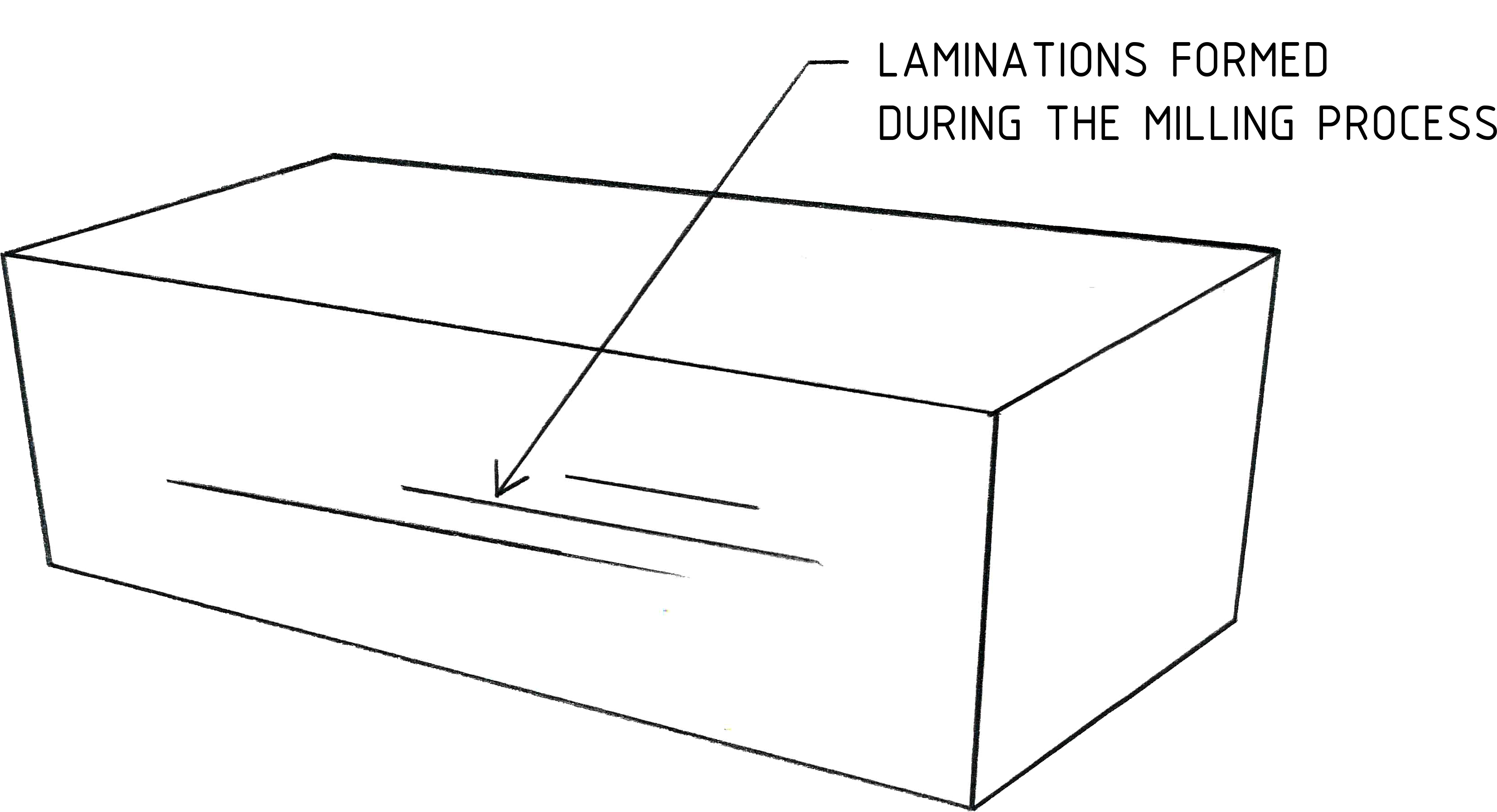 A lamination is a discontinuity or defect that is aligned parallel to the working direction of a metal. Typically, a lamination is the result of ingot steel production. As a steel ingot cools, it may develop a cavity called a pipe. When the ingot is rolled, the pipe becomes elongated and forms a lamination in the steel.