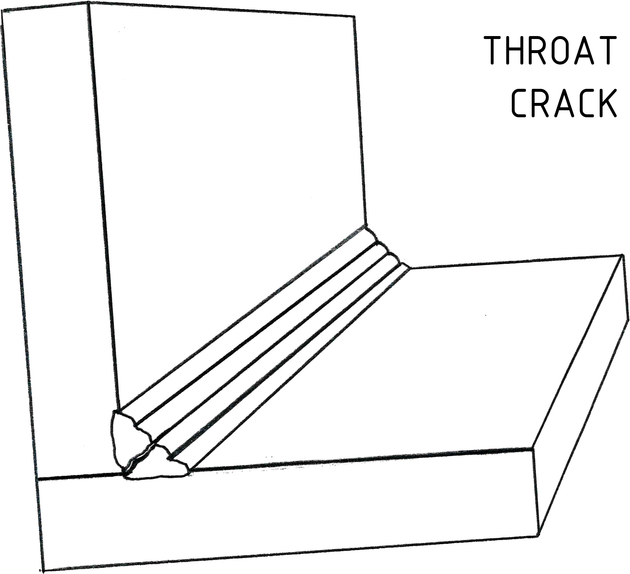 Throat cracks may be the extension through successive weld passes of a crack that started in the first pass (root pass). A throat crack that starts in the root pass and is not removed or completely re-melted before deposition of the next pass tends to progress into it and then to each succeeding pass, until it appears at the surface. Final extension of the crack to the surface may also occur during cooling after welding has been completed.