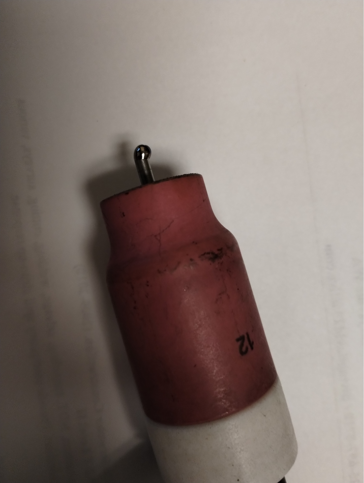 Figure 11.13. Pure Tungsten with a Balled Tip / Photo Credit: Karl Fulton, CC BY 4.0