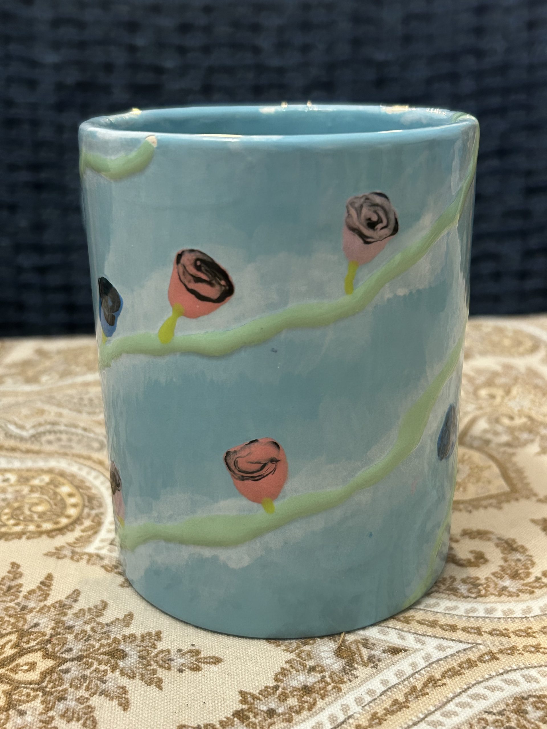 Blue ceramic mug with roses on a green vine in the glaze Blue ceramic mug with roses on a green vine in the glaze Blue ceramic mug with roses on a green vine in the glaze Blue ceramic mug with roses on a green vine in the glaze Blue ceramic mug with roses on a green vine in the glaze Blue ceramic mug with roses on a green vine in the glaze Blue ceramic mug with roses on a green vine in the glaze