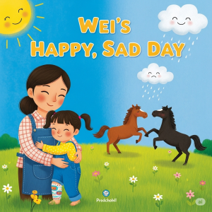 The next day, Wei’s daughter, Lian, tried to ride the new horse. She slipped and fell, getting a big booboo on her knee. Ouch! 🩹 “Oh no!” said her neighbors. “That’s so sad!” Farmer Wei gave her daughter a big hug and said, “We’ll see.”